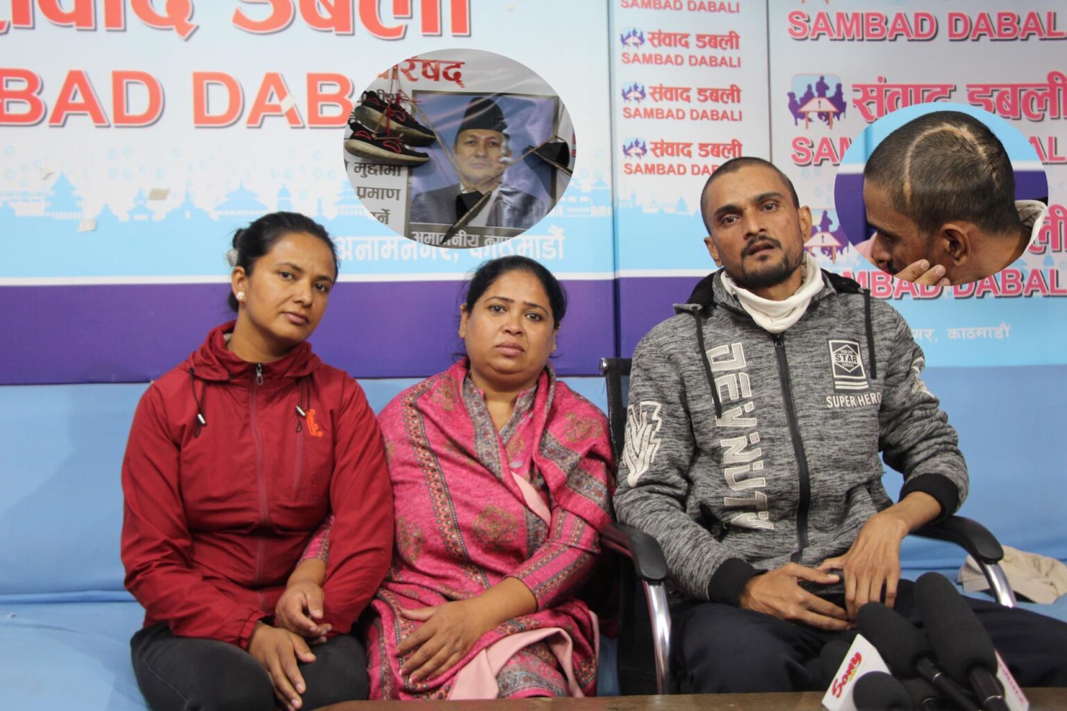 काठमाडौं । न्याय माग्न अदालत जाँदा न्यायधिश नै विकेर पीडककै पक्षमा फैसला गरेको भन्दै पीडितले जुत्तको माला लगाएका छन् । आइतबार काठमाडौंको संवाद डबलीमा पीडितहरुले पत्रकार सम्मेलनको आयोजना गरी न्याय मूर्तिकारुपमा रहेका न्याधिश नै भ्रष्ट भएपछि आफूहरुसँग यसको विकल्प नरहेकोसमेत बताएका छनन् ।