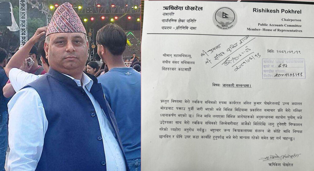 आदेशको पुस ११ गते प्रमाणीकरण भएपछि प्रहरीले अनुसन्धान सुरु गरेको थियो । ठगीको विवरण सार्वजनिक भएपछि सभापति पोखरेलले अनिललाई जिम्मेवारीबाट हटाएका थिए । पोखरेलका स्वकीय सचिवमाथि ठगी मुद्दा छ ।