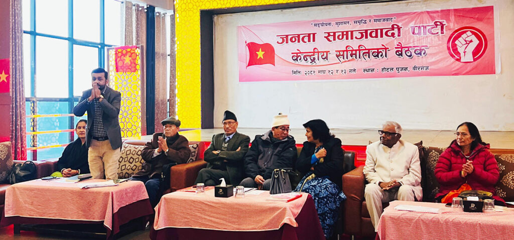 वीरगञ्ज । जनता समाजवादी पार्टी ( जसपा ) को केन्द्रीय समिति बैठक बिरगञ्जमा सुरु भएको छ। आज शनिबार पर्साको वीरगञ्जमा रहेको पुजन होटलमा केन्द्रीय अध्यक्ष अशोककुमार राईको अध्यक्षतामा केन्द्रीय समितिको बैठक प्रारम्भ भएको छ ।