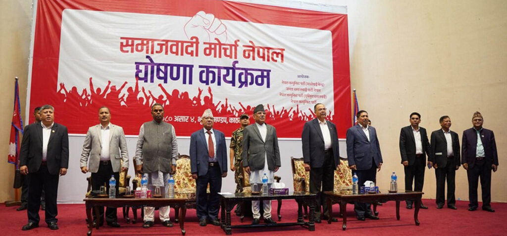 विसं २०८० असार ४ गते नेपाल कम्युनिष्ट पार्टी ९माओवादी केन्द्र०, नेपाल कम्युनिष्ट पार्टी ९एकीकृत समाजवादी०, जनता समाजवादी पार्टी, नेपाल र विप्लव नेतृत्वको नेकपालगायतको सहभागितामा समाजवादी मोर्चा गठन गरिएकामा पछिल्लो समय उपेन्द्र यादव नेतृत्वको जसपा नेपाल मोर्चामा सक्रिय छैन। मोर्चाले करिब ६० जिल्ला तथा ३० स्थानीय तहमा साङ्गठनिक संरचना तयार गरेको जनाएको छ।