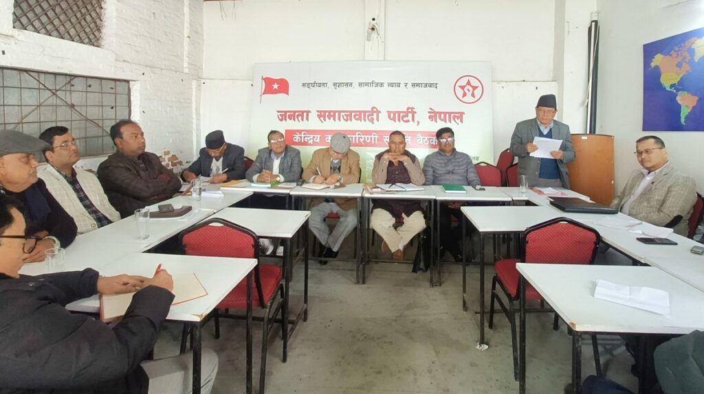 काठमाडौं । जनता समाजवादी पार्टी ९जसपा० नेपालको केन्द्रीय कार्यकारिणी समितिको बैठक आज पनि जारी रहने छ । शनिबारदेखि पार्टी केन्द्रीय कार्यालय बालकुमारीमा जारी बैठकमा समसामयिक राष्ट्रिय राजनीतिक विषयसहित पार्टीको सङ्गठनात्मक कार्यदिशाबारे छलफल भइरहेको छ ।