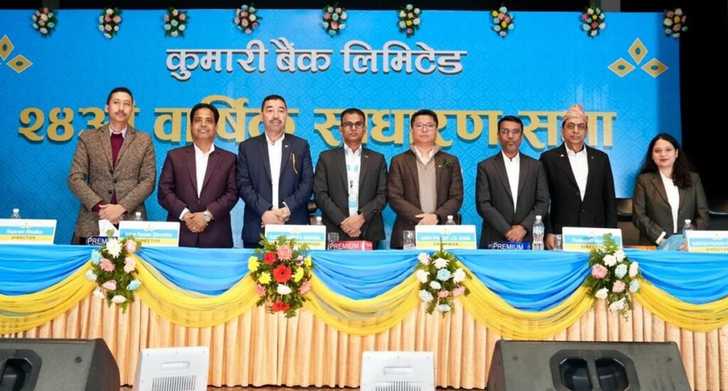 काठमाडौं । कुमारी बैंक लिमिटेडको २४औँ वार्षिक साधारण सभा सोमबार काठमाडौंको टुँडिखेलस्थित त्रिभुवन आर्मी अफिसर्स क्लबमा सम्पन्न भएको छ ।