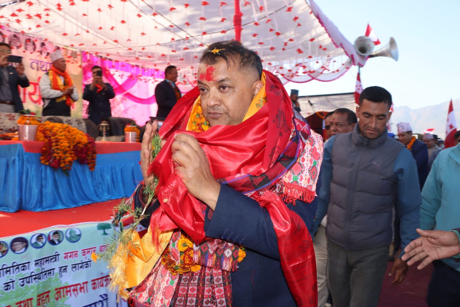 कार्यक्रममा विभिन्न जिल्लाका पार्टी सभापति, जिल्ला स्थित पार्टीका विभिन्न ओहदाका नेता,जनप्रतिनिधि, कार्यकर्ता, सुभेच्छुक, पत्रकार, सुरक्षाकर्मीहरुको बाक्लो उपस्थिती रहेको थियो । राष्ट्रिय स्तरका कलाकार राधिका हमाल, सृजना खत्री लगायत स्थानीय कलाकारहरुको समेत प्रस्तुती र लोक संस्कृति झल्कने पञ्चेबाजा, पैसेरी नाँच समेत प्रस्तुत गरिएको थियो । विभिन्न पार्टी परित्याग गरि नेपाली काँग्रेसमा आउने व्यक्तिहरुलाई पार्टी प्रवेश समेत गराइएको थियो । कार्यक्रमको संचालन पार्टीका सचिब एवं शारदा नगरपालिकाका मेयर प्रकाश भण्डारीले गरेका थिए ।