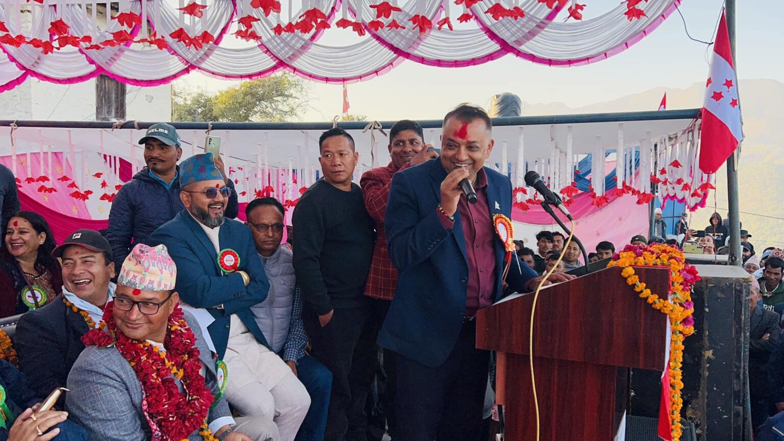 एमालेसँग कांग्रेस बराबरको व्यवहार चाहन्छ, न एमालेलाई हेप्छौं, न हेपिन्छौं। न माथि न तल हामी केन्द्रदेखि जिल्लासम्म त्यही चाहन्छौं। हामीलाई काहिँ कतैपनि दुव्र्यवहार भयो भने सहेर बस्दैनौं। त्यसैले हामी एमालेसँग मिलेर केही परिणाम दिन चाहन्छौं।’ उनले गत संघीय चुनावमा प्युठानमा कांग्रेसलाई गिलासमा भोट हाल्न लगाएर गल्ती गरेको भन्दै माफी मागे।