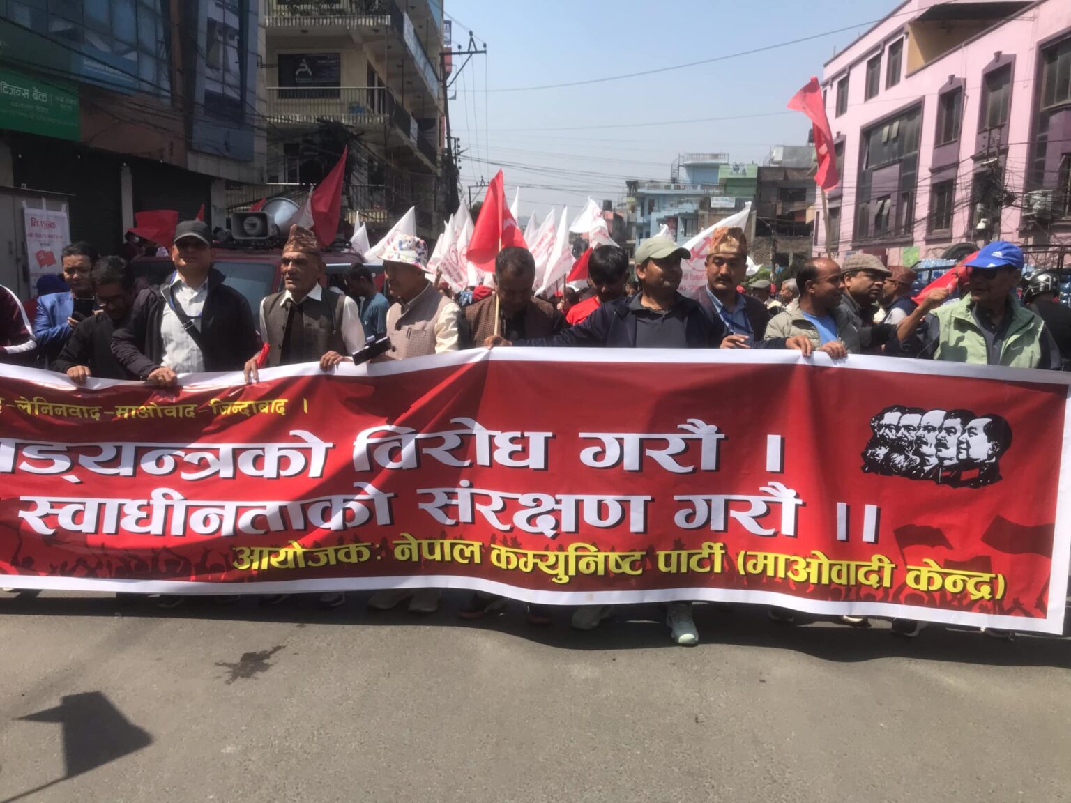 वर्तमान अवस्था तथा प्रतिगामी षड्यन्त्रको विरोध गर्दै गणतन्त्रको सुदृढीकरण र राष्ट्रिय स्वाधीनताको संरक्षण गर्ने उद्देश्यका साथ भृकुटीमण्डपमा आयोजना गरिएको जनसभाअघि राजधानीका विभिन्न स्थानबाट जुलुस निकालिनेछ ।