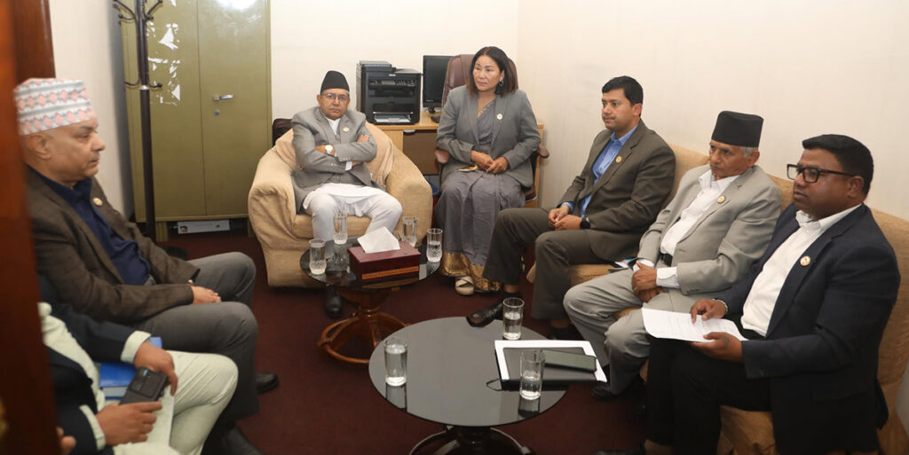 काठमाडौँ । कुलमान घिसिङलाई विद्युत प्राधिकरणबाट बर्खास्त गरेपछि प्रतिपक्षी दलहरूको अवरोधका कारण अवरुद्ध रहेको प्रतिनिधि सभा बैठक सञ्चालनका लागि सभामुख देवराज घिमिरले प्रमुख राजनीतिक दलका प्रमुख सचेतकहरूसँग छलफल गरेका छन् । सभामुख देवराज घिमिरेले संसदको गतिरोध अन्त्यका लागि पहल जारी राखेका छन् ।