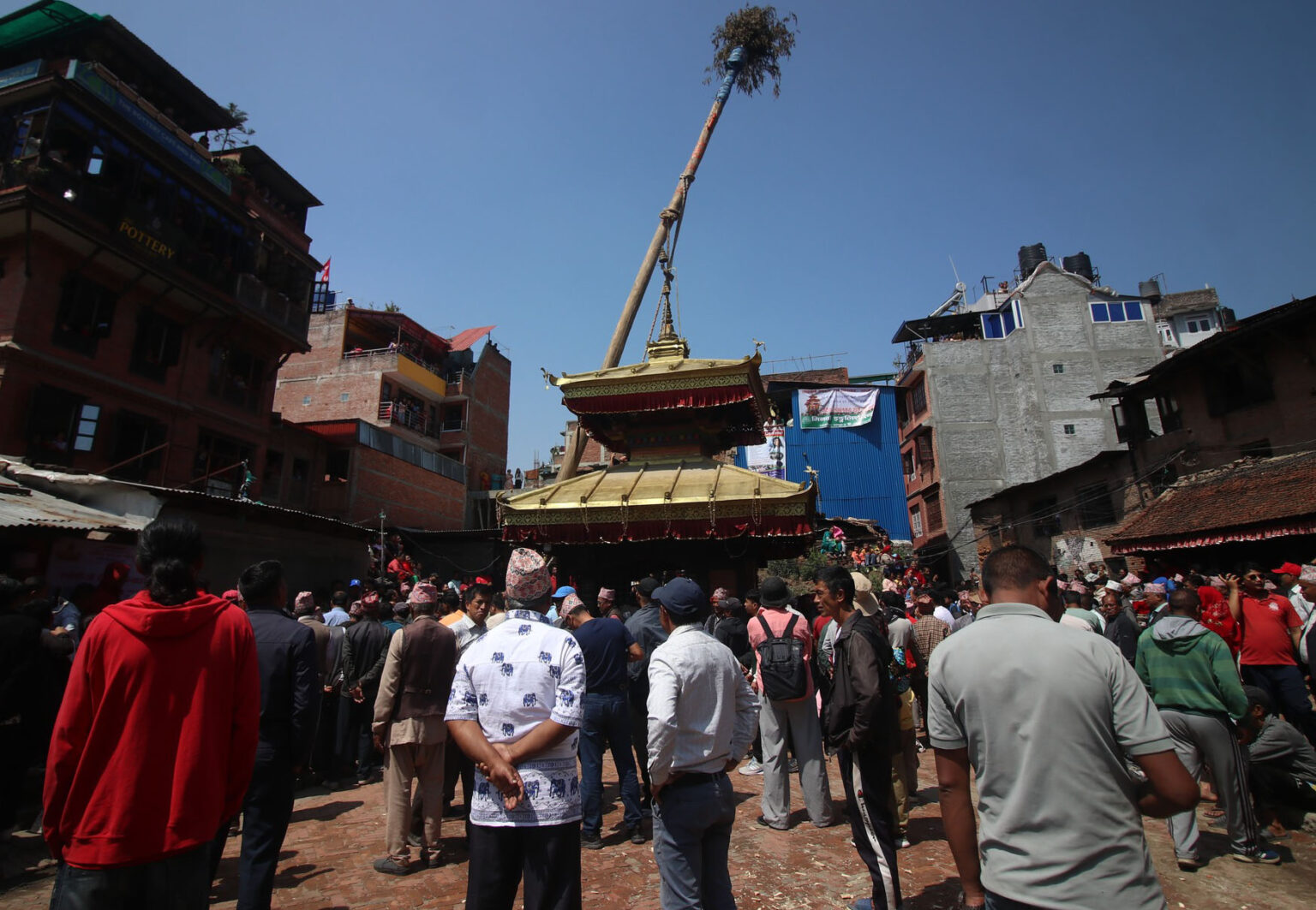 भक्तपुर । भक्तपुरमा आठ रात नौ दिनसम्म चल्ने बिस्केट जात्राको आज अन्तिम दिन भक्तपुरको पोटरीस्क्वायरस्थित तालाक्वो ज्याठा गणेश मन्दिर अगाडि उठाइएको हात नभएको लिङ्गो ढालिएको छ । प्रत्येक वर्ष चैत मसान्तका दिन स्थानीयले भक्तपुरको कुमालेटोलस्थित तालाक्वोमा हात नभएको लिङ्गो उठाएर जात्रा गर्दै अन्तिम दिन आज विधिपूर्वक पूजागरी ढालेपछि भैरवको रथ तान्ने प्रक्रिया सुरु हुने गर्दछ ।