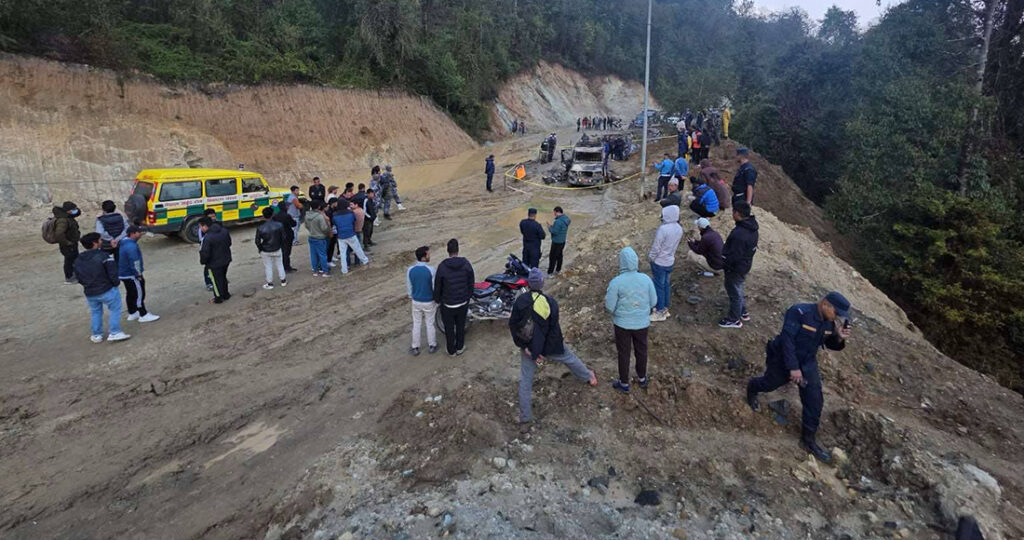ताप्लेजुङ । पाथीभरा दर्शनका लागि जाँदै गरेको एक बोलेरोमा करेन्ट लागेर आगलागी हुँदा ४ जनाको मृत्यु भएको छ । फुङलिङ नगरपालिका– १० स्थित सडक खण्डमा यो दुर्घटना भएको हो । प्रहरीका अनुसार बिजुलीको तार झरेर मे १ ज ३०११ गाडीमा आगो लागेको थियो । घटनामा दुई जना घाइते रहेका छन् । उनीहरुलाई हेलिकप्टरबाट काठमाडौँ ल्याउने तयारी गरिएको कोशी प्रदेश प्रहरी कार्यालयका एसएसपी भीम दाहालले बताए ।