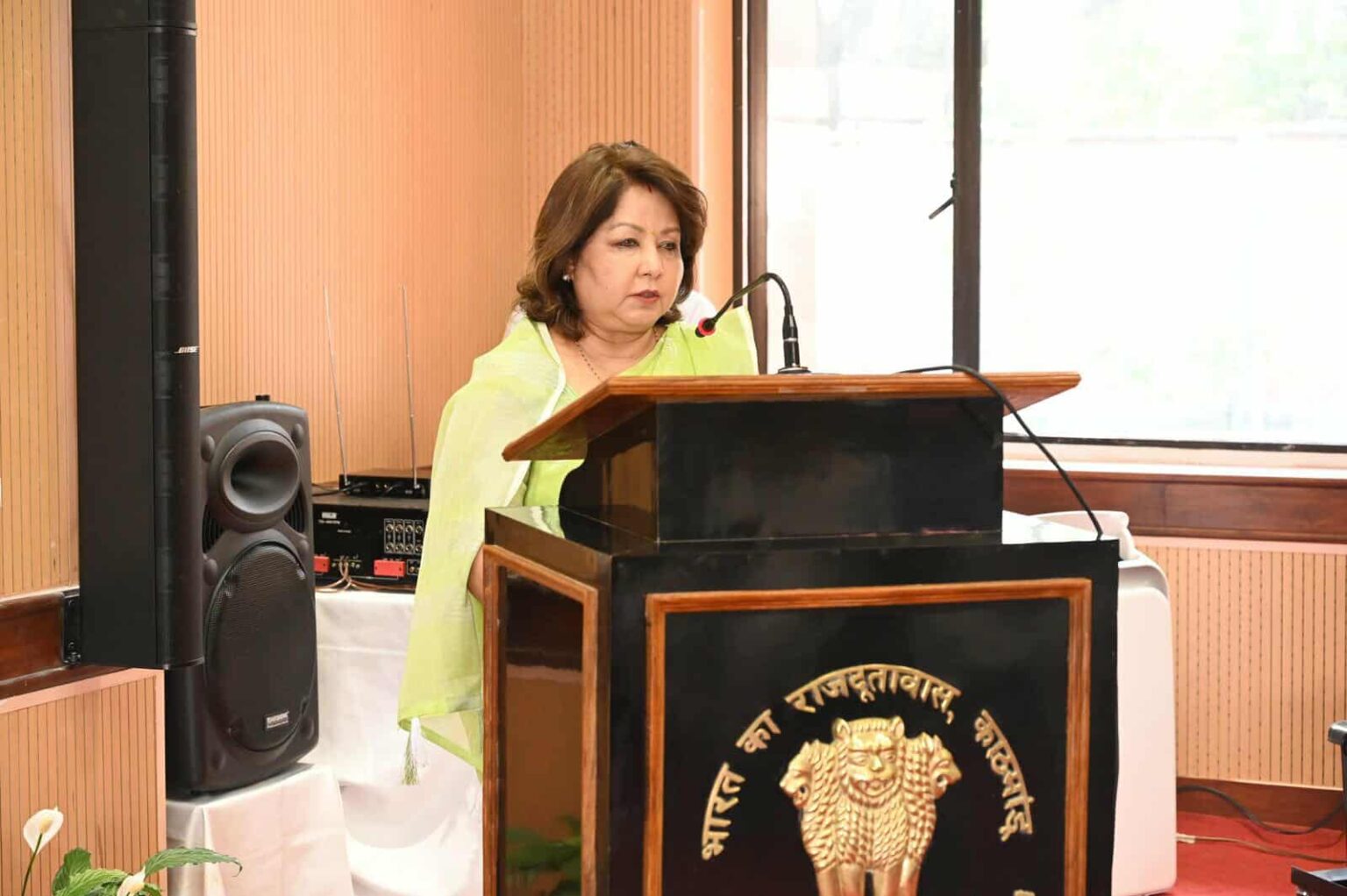 उनले भनिन्, “हाम्रा खुला सिमानाहरू एकापसका विश्वासका प्रतीक हुन् र हाम्रा पारिवारिक सम्बन्धहरूले आपसमा नाता पनि गाँस्दछन् । हामी सधैँ खुसी या संकटको समयमा एकसाथ उभिएका छौँ । भूकम्पले नेपाललाई तहसनहस पार्दा सबैभन्दा पहिला सहयोगको हात अगाडि बढाएको भारतले नै हो ।”