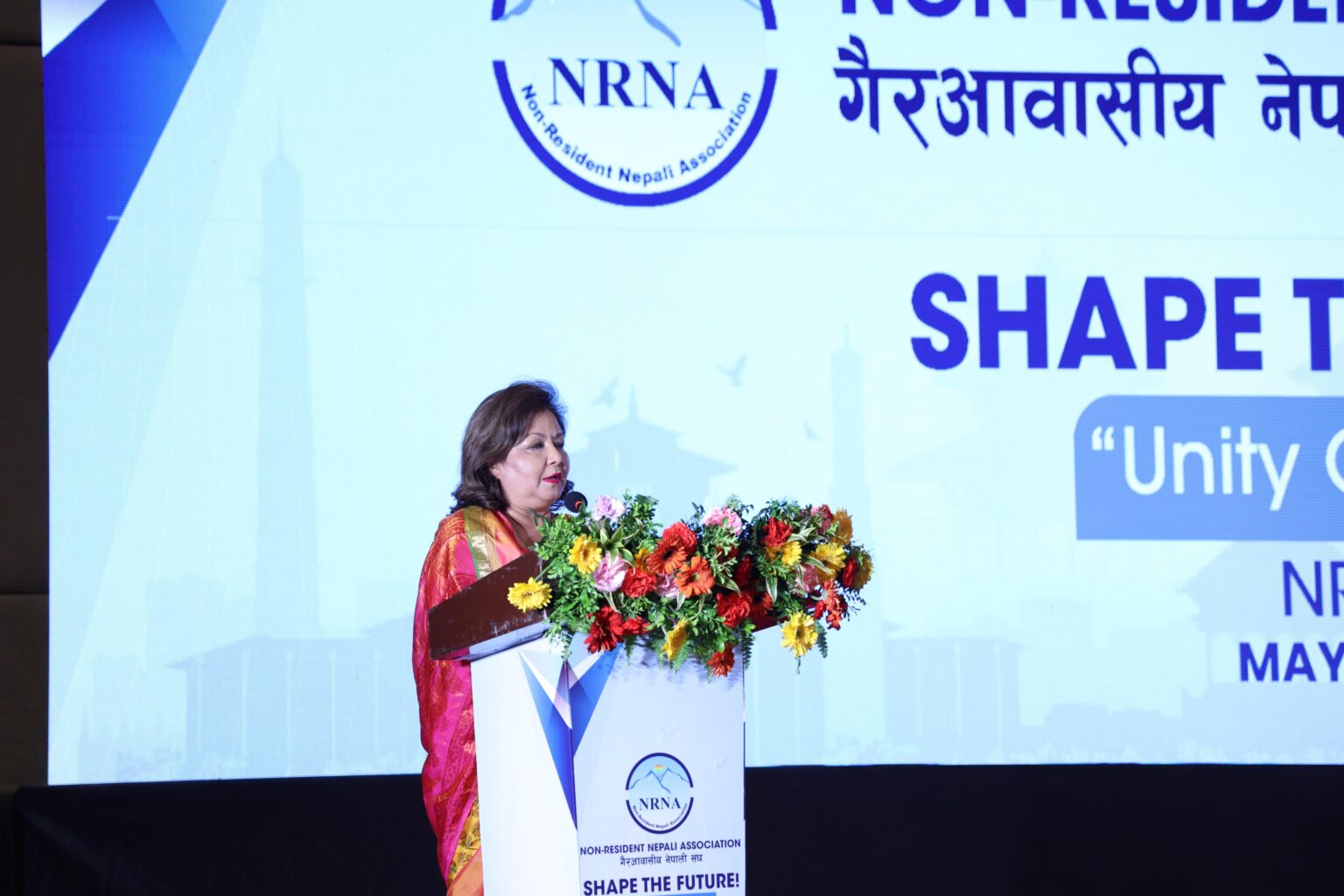 उनले एनआरएनएमा रहेर देश समृद्ध बनाउन सहयोग गर्नुपर्ने बताइन् । परराष्ट्रमन्त्री डा. राणाले भनिन्, ‘यहाँ आएर राजनीति नगरिदिनुस् । यहाँ आएर देशलाई समृद्ध बनाउन तपाईँहरूले सहयोग गरिदिनुस् । हामी राजनीति गर्नेलाई त्यत्ति धेरै समृद्धि कसरी गर्ने भनेर थाहा छैन । तपाईँहरू त कहीँ लेबर गरेर पनि गर्नुभएको छ ।