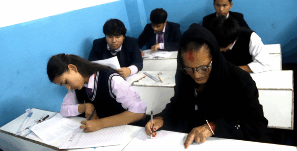 काठमाडौँ । पढ्नलाई उमेरले छेक्दैन । रहन हुने हो र ईच्छाशक्ति हुने हो भने जस्तो सुकै परिक्षा पनि सहज हुन्छ भन्ने कुराको उदाहरण बनेकी छिन् ७३ वर्षीया सूर्यवती खनाल । काठमाडौँ जिल्लाको तारकेश्वर नगरपालिका–वडा नं १० स्थित मनमैजुस्थित एन्जल्स हार्ट सेकेन्डरी स्कुलको परीक्षा केन्द्रबाट ७३ वर्षीय सूर्यवती खनालले आज कक्षा १२ को परीक्षा दिएकी छन् । उनी तारकेश्वर–११ स्थित ग्रामीण आदर्श बहुमुखी क्याम्पसकी विद्यार्थी हुन् ।