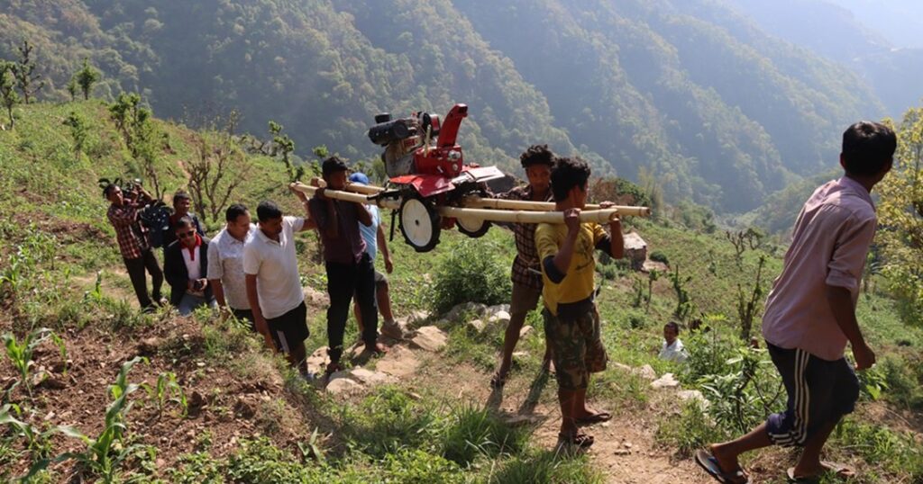 चितवन । चितवनको विकट कान्दामा अझै सवारी साधन पुगेको छैन। चेपाङ समुदायको बसोबास रहेको सो स्थानमा सवारी साधान पुगेको ठाउँबाट दुई घण्टा बढी पैदलयात्रा गर्नुपर्ने बाध्यता छ। तर, बोकेरै भए पनि यहाँका चेपाङ समुदायले गाउँमा पहिलोपटक हाते ट्रयाक्टर पुर्याएका छन्। पहिलोपटक बारी जोत्ने ट्रयाक्टर पुग्दा उनीहरु दङ्ग छन्। मितेरी कृषक समूहका अध्यक्ष सीताबहादुर चेपाङ गाउँमै हाते ट्रयाक्टर आइपुग्दा सबै स्थानीय खुसी भएको बताए। उनले भने, ‘युवाहरु श्रम गर्न बाहिर जाँदा गाउँमा बुढाबुढी र बालबालिकामात्र रहनुपर्ने अवस्था छ, गोरु पाल्ने परम्परा पनि घट्दै जाँदा खेतबारी बाँझै हुने अवस्था थियो । अब हाते ट्रयाक्टरले जोत्न पाउँदा सहज हुने भयो।’
