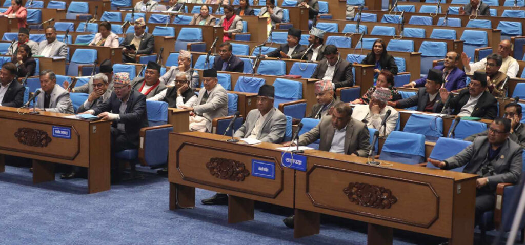 भिजिट भिसा प्रकरणमा गृहमन्त्री रमेश लेखकमाथि छानबिन र राजीनामाको माग गरिरहेका विपक्षी र सत्ता पक्षबीच कुरा नमिलेकाले सदन निरन्तर अवरुद्ध भइरहेको छ । सहमति जुटाउन सभामुखले सत्ता र प्रतिपक्ष दलका प्रमुख सचेतकहरूसँग छलफल गरेपनि दुवै पक्ष अडानबाट पछि हटेनन् ।