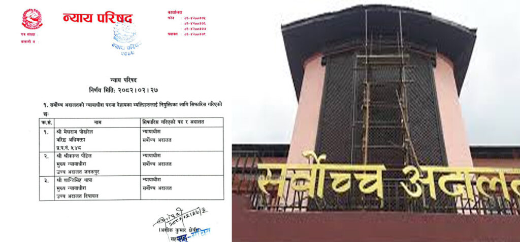 सर्वोच्चमा चार न्यायाधीश रिक्त थिए। जसमा परिषद्ले तीनजनाको नाम मात्रै सिफारिस गरेको छ।
