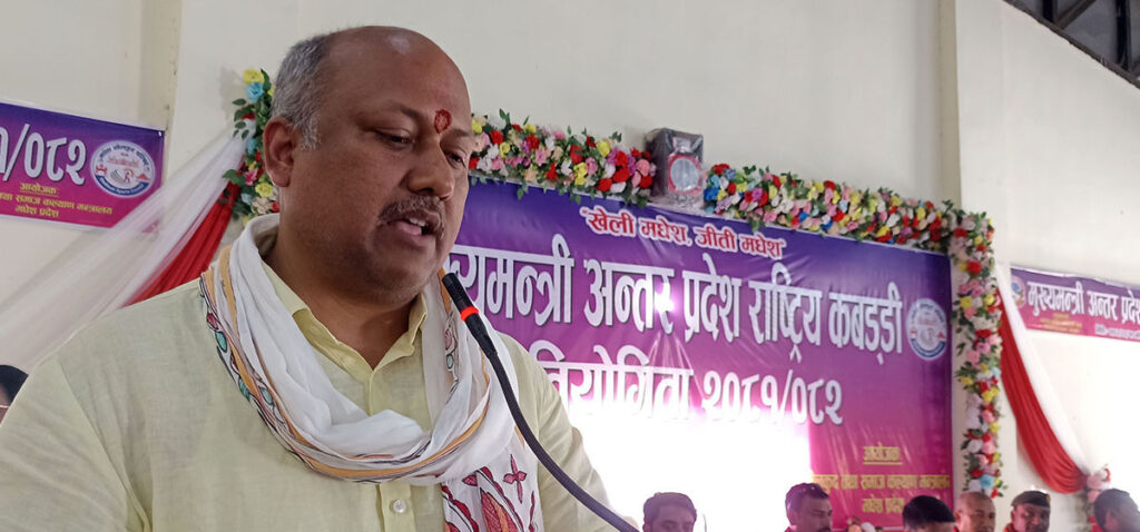 मधेशको लोकप्रिय खेलको रुपमा रहेको कबड्डी, क्रिकेटसहित अन्य खेलकुदको विकासका लागि पूर्वाधारको निर्माणका साथै खेलाडीलाई प्रशिक्षणसहितको सुविधा प्रदान गर्न बजेट विनियोजन गरिएको बताए।