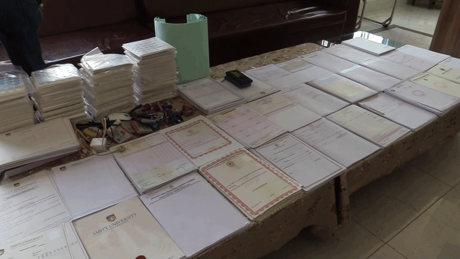 यसै गरी भारतको एमीटी विश्वविद्यालयका ८० वटा नक्कली मार्क सिट, ४० वटा प्रोभिजनल सर्टिफिकेट, ६० वटा क्यारेक्टर सर्टिफिकेट र ४९ वटा अन्य खाली प्रमाणपत्रहरू र ४० वटा खाली लोगो फेला परेका छन्। यस्तै जवाहरलाल नेहरू टेक्निकल युनिभर्सिटी हैदराबाद, छत्रपति साहूजी महाराज युनिभर्सिटी कानपुर, असम उच्च माध्यमिक शिक्षा परिषद्, कुरुक्षेत्र विश्वविद्यालय, आन्ध्र विश्वविद्यालय सहित अवैध कारोबारका लागि प्रयोग भइरहेका विभिन्न विश्वविद्यालय तथा कार्यालयहरूको नाम लेखिएका दर्जनौँ नक्कली स्ट्याम्प र छापहरू पनि बरामद भएका छन्।