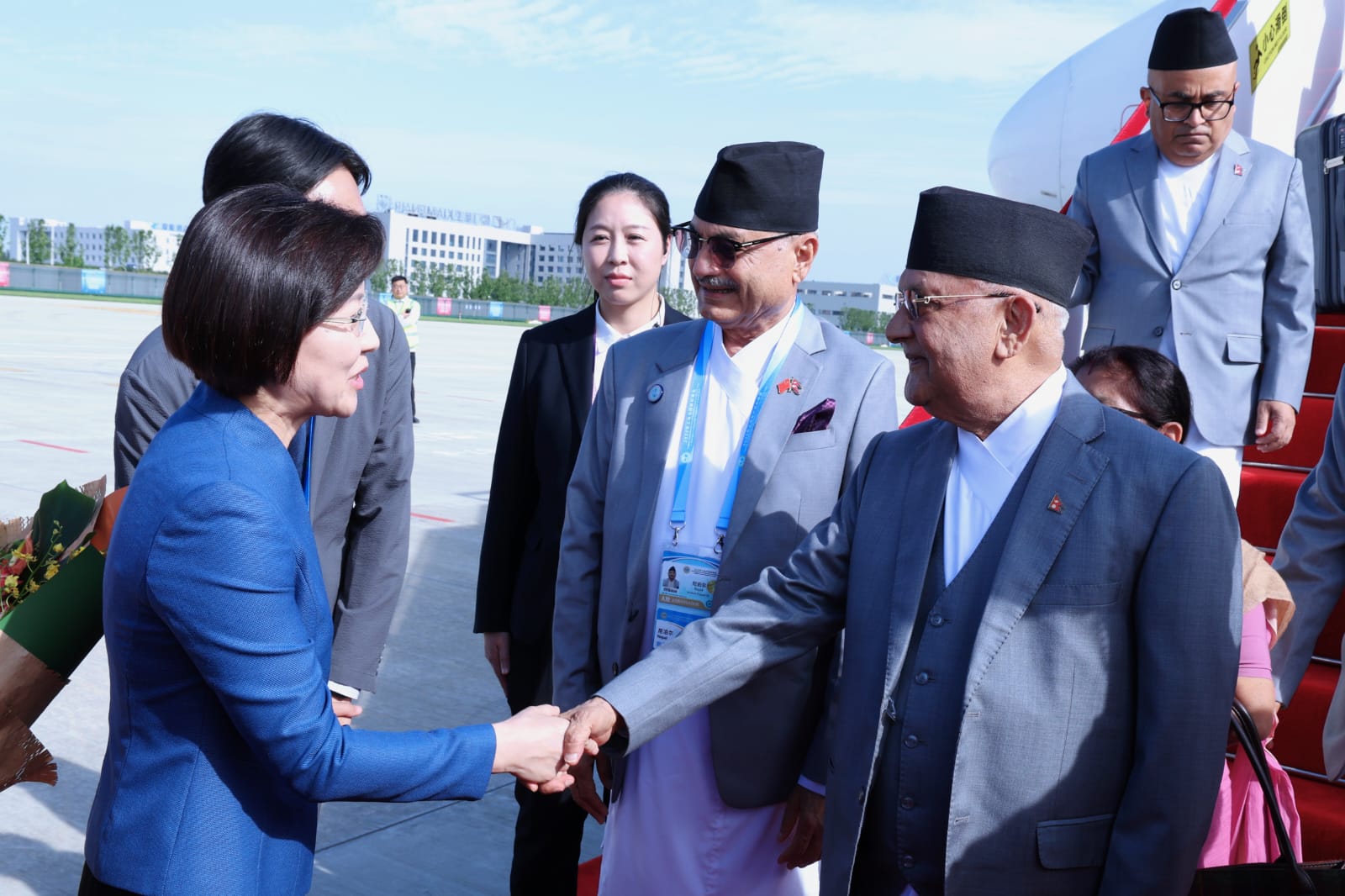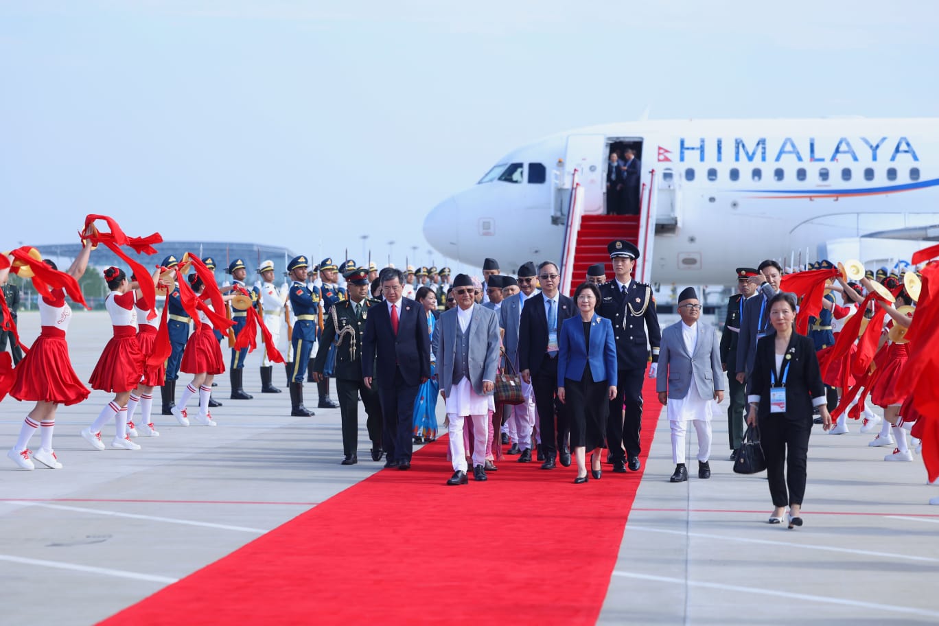 मित्रराष्ट्र चीनका राष्ट्रपति सी चिनफिङको मैत्रीपूर्ण निमन्त्रणामा नेपाली प्रतिनिधिमण्डलको नेतृत्व गर्दै प्रधानमन्त्री ओली स्थानीय समय अनुसार दिउँसो ३स् १५ बजे हिमालय एयरलाइन्सनको विशेष विमानमार्फत थियानजिन विनहाइ अन्तर्राष्ट्रिय विमानस्थलमा अवतरण गरेका हुन्।