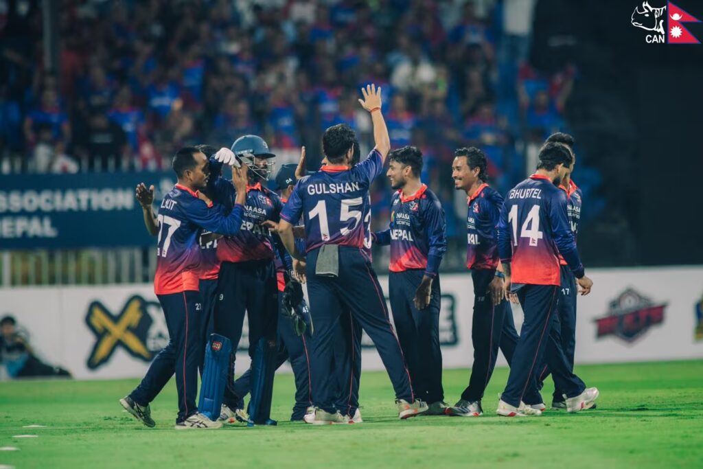 त्यसअघि शारजाह क्रिकेट अन्तर्राष्ट्रिय रंगशालामा टस हारेर पहिला ब्याटिङ थालेको नेपालले निर्धारित २० ओभरमा आठ विकेट गुमाउँदै १४८ रन बनाएको थियो। नेपालका रोहितले सर्वाधिक ३८ रन बनाए। ३५ बलमा तीन चौका र एक छक्का प्रहार गरे। कुशलले भने २१ बलमा समान दुई चौका र छक्कासहित ३० रन बनाए। यी दुईबीच तेस्रो विकेटका लागि ५८ रनको साझेदारी भएको थियो। गुल्सनकुमार झा २२ र उपकप्तान दीपेन्द्रसिंह ऐरी १७ रनमा आउट हुँदा अन्य ब्याटरले राम्रो प्रदर्शन गर्न सकेनन्।