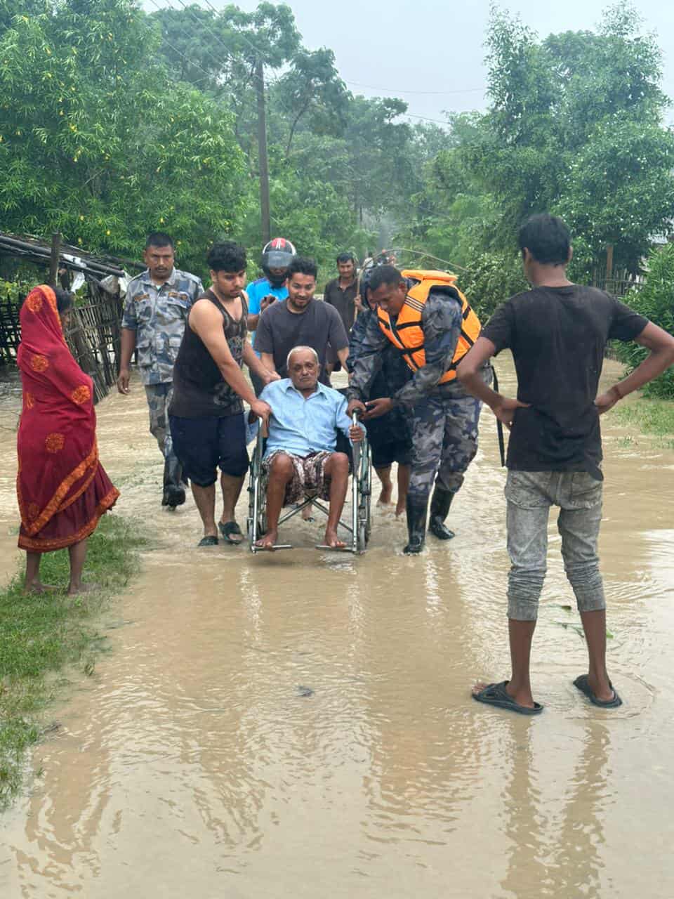 उर्लाबारी(९ बोर्डर लाइन क्षेत्रमा रतुवा खोलाको पानी पस्दा २० घरका बासिन्दा नजिकैका छिमेकीका घरमा अस्थायी रूपमा स्थानान्तरण गरिएको छ।स्थानीय प्रशासन र विपद् व्यवस्थापन समिति प्रभावित क्षेत्रमा राहत, उद्धार र मर्मत कार्यमा जुटिरहेको जनाएको उनले जानकारी दिए।
