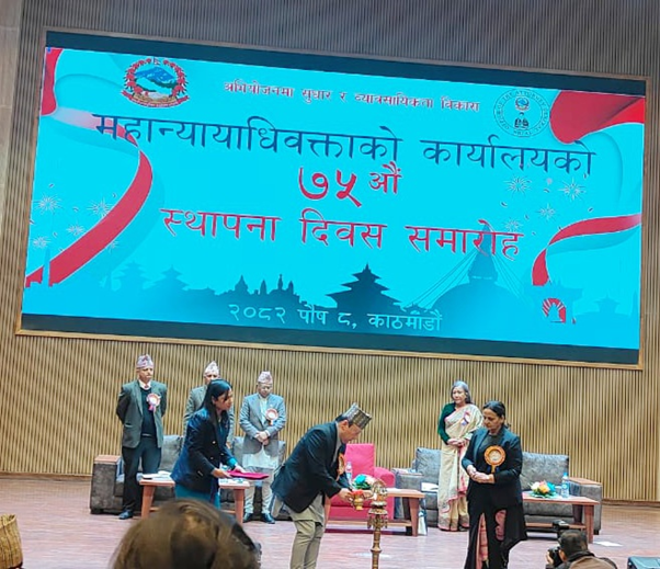 सो अवसरमा ‘सर्वोत्कृष्ट सरकारी वकिल’ को सम्मान सहन्यायाधिवक्ता अच्युतमणि न्यौपानेलाई प्रदान गरिएको छ भने १३ जना सरकारी वकिल र कर्मचारीलाई उत्कृष्ट कार्यसम्पादनमा पुरस्कार तथा सम्मान गरिएको थियोे । प्रधानन्यायाधीश राउतले उक्त पुरस्कार तथा सम्मान प्रदान गरे । सर्वोत्कृष्ट सरकारी वकिल सहन्यायाधिवक्ता न्यौपानेले सम्मानले काम र कर्तव्यमा थप उर्जा र जिम्मेवारी थपिएको अनुभव राखे । कार्यक्रममा प्रधानन्यायाधीश राउतले महान्यायाधिवक्ता कार्यालयले प्रकाशित स्थापना दिवस विशेषाङ्क विमोचन गरेका थिए । रासस