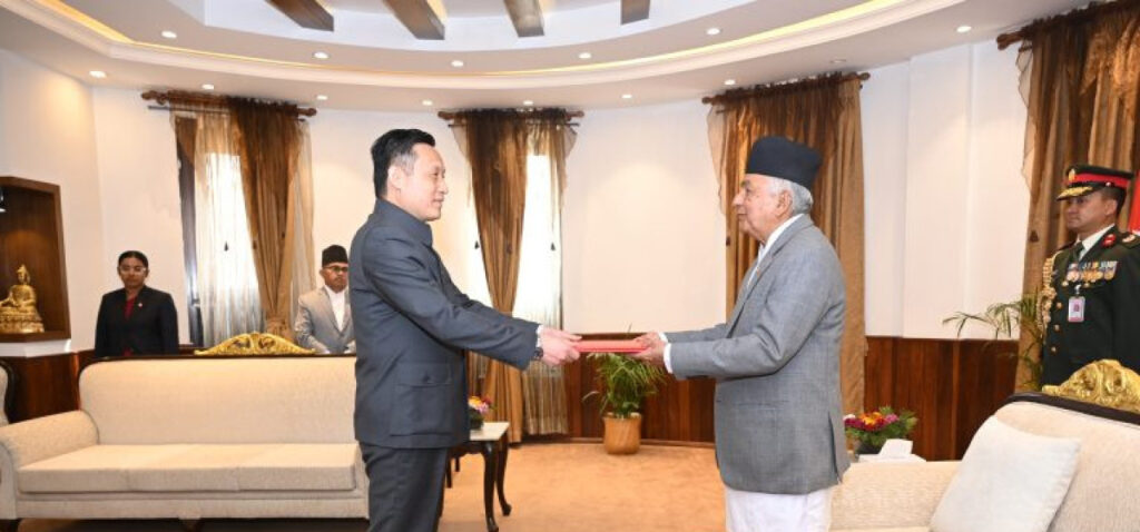 काठमाण्डौं । राष्ट्रपति रामचन्द्र पौडेलसमक्ष नेपालका लागि विभिन्न पाँच मुलुकका राजदूतले आज राष्ट्रपति भवनमा आयोजित विशेष समारोहमा आ(आफ्नो ओहोदाको प्रमाणपत्र प्रस्तुत गरेका छन्।