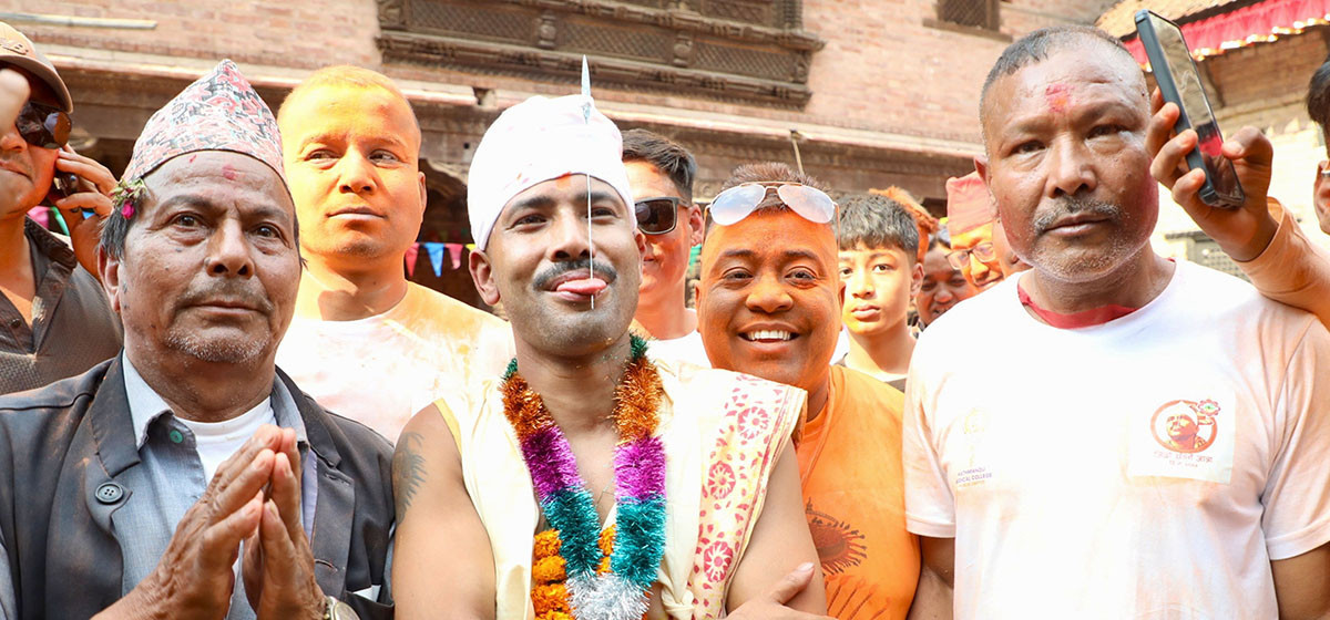 भक्तपुर । भक्तपुरको मध्यपुर थिमि बोडेमा बुधबार स्थानीय सुजन बाग श्रेष्ठले चौथो पटक जिब्रो छेडाएका छन्। मध्यपुर थिमि नगरपालिका(८ बोदेकै सुजनले बोदे माध्यमिक विद्यालयसँगैको बोदे लायकु चोकमा जिब्रो छेडाएका हुन्। करिब एक फिट लामो फलामको सुइरोले सुजनको जिब्रो छेडिएको हो। जिब्रो छेड्दा बाजागाजासहित वाहवाही भएको थियो। प्रत्येक वर्ष वैशाख २ गते यही ठाउँमा जिब्रो छेड्ने जात्रा हुने प्रचलन छ।