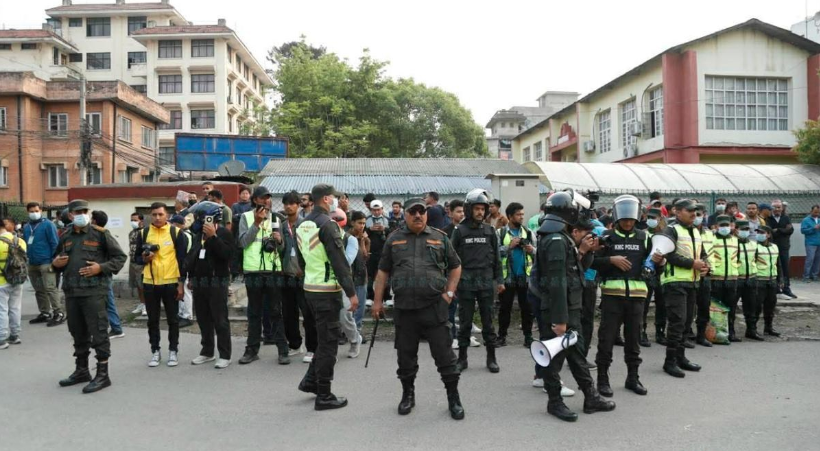 काठमाडौँ । काठमाडौं महानगरपालिकाको महानगर प्रहरी पनि थापाथलीको सुकुम्बासी बस्तीमा पुगेको छ। शनिबार बिहानैदेखि बस्ती खाली गर्नका लागि महानगर प्रहरी गाडीसहित सुकुम्बासी बस्तीमा पुगेको हो। नेपाल प्रहरी र सशस्त्र प्रहरी रातिदेखि नै त्यस क्षेत्रमा परिचालित छ। बिहान थप संख्यामा प्रहरी तैनाथ गरिएको छ।