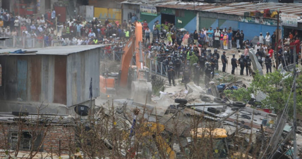 काठमाडौं । काठमाडौँ महानगरपालिका–९ स्थित गैरीगाउँको सुकुमबासी बस्ती अहिले खाली गरिएको छ । गैरीगाउँमा अतिक्रमण गरी निर्माण गरिएका घरटहरा हटाएको हो । उक्त टोली अहिले सिनामङ्गलस्थित सुकुमबासी बस्ती हटाउनका लागि त्यसतर्फ गएको छ । नेपाल सरकारको निर्देशनअनुसार अतिक्रमण गरी निर्माण गरिएका संरचना तथा बस्ती भत्काउने अभियान आज बिहानदेखि तीव्र बनाइएको हो ।