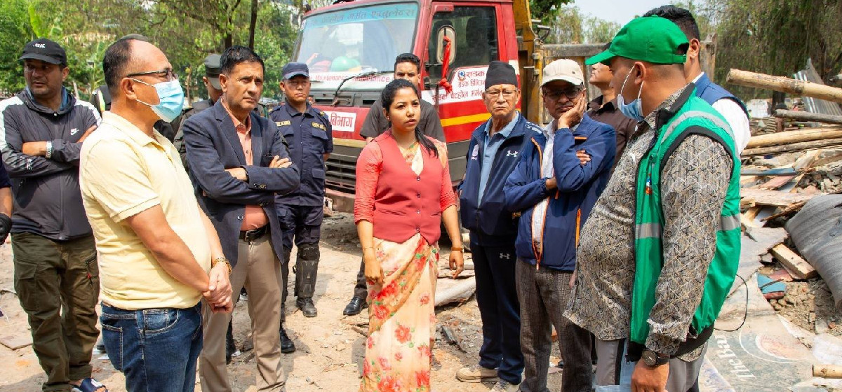 काठमाडौं । काठमाडौं महानगरपालिकाका कार्यवाहक प्रमुख सुनिता डंगोलले सुकुम्बासी बस्ती हटाएर खाली गराइएको सार्वजनिक जग्गाको संरक्षणका लागि काम थाल्न निर्देशन दिएकी छन्। थापाथलीस्थित वागमती नदी किनाराको निरीक्षणपछि उनले वागमती सभ्यता एकीकृत विकास समितिलगायत सरोकारवाला कार्यालयसँग समन्वयमा तारबार लगाउने काम थाल्न निर्देशन दिएकी हुन्।